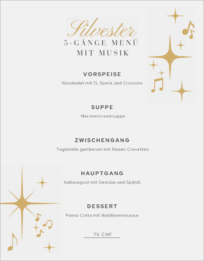 Alle Menüs mit einem kleine grünen Salat oder Suppe
